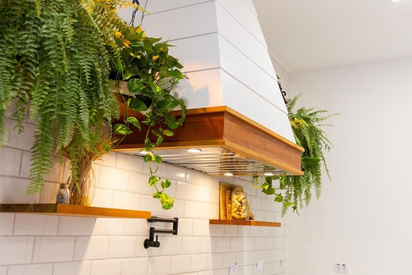 👨🍳 Cozinha e área gourmet com planejados, coifa, ilha com cuba “farm-sink” e ducha