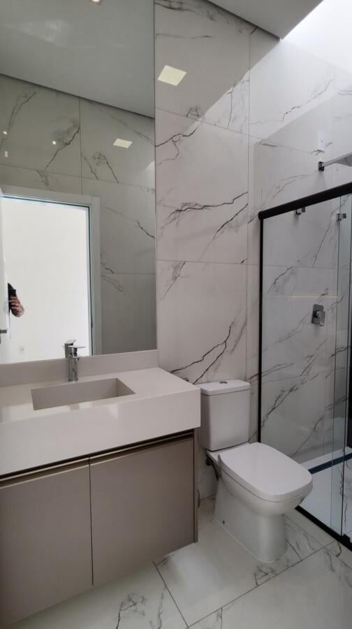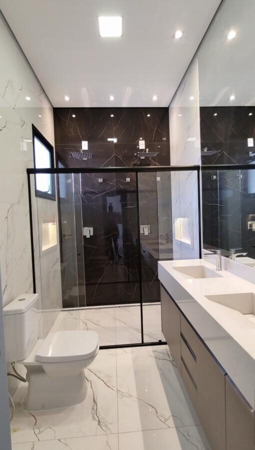 📐 Terreno diferenciado de 350m² 🏠 Área construída: 221,91m²✨ Destaques do imóvel: 🛏️ 3 suítes (sendo 1 máster com closet planejado) 🚪 Corredor com LED + armários planejados 👨‍🍳 Cozinha com pé direito de 5m, planejados, forno elétrico + cooktop 🔥 🧂 Despensa integrada à cozinha 🛋️ Sala integrada com pé direito alto (5m) 🖥️ Escritório com planejados 🛁 Banheiros com box, espelhos e móveis planejados 🚽 Lavabo completo com espelho e planejados 🍖 Área gourmet com churrasqueira e planejados 🏊 Piscina com ponto para aquecimento 🚗 Garagem para até 6 carros (3 cobertos) + tomada para carro elétrico ⚡ 🪟 Persianas automáticas com controle remoto nos quartos 🧺 Lavanderia com depósito 🌞 Boiler 600L com pressurizador (aquecimento solar + elétrico) ❄️ Infra para ar-condicionado + ponto de dreno prontos 🔋 Infra de energia fotovoltaica pronta 🔌 Casa com sistema 110V e 220V (configuração flexível)📍Condomínio completo, localização privilegiada e acabamento moderno!