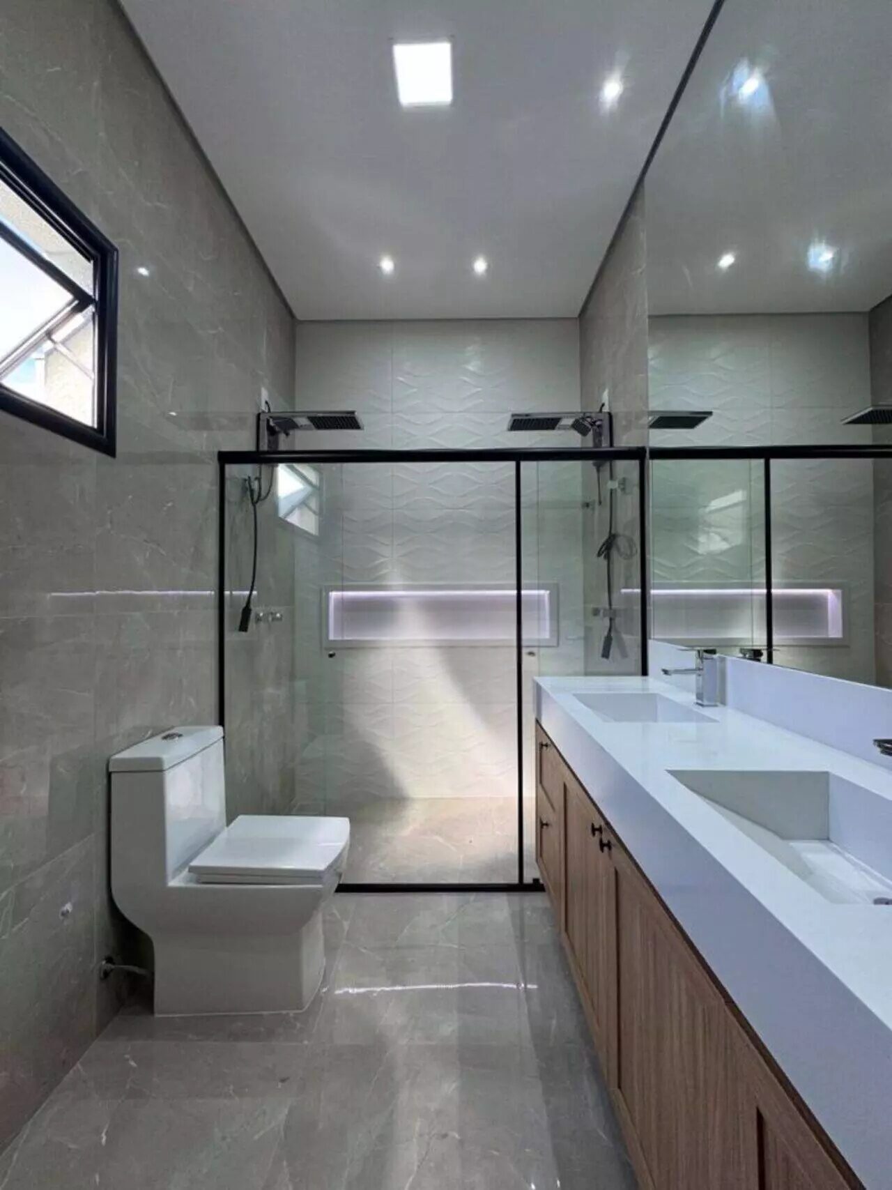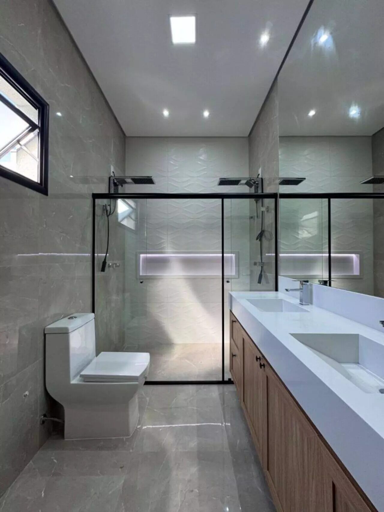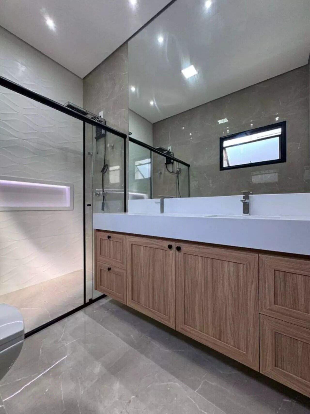 🛁 Banheiros completos com armários, espelhos, box e chuveiro eletrônico