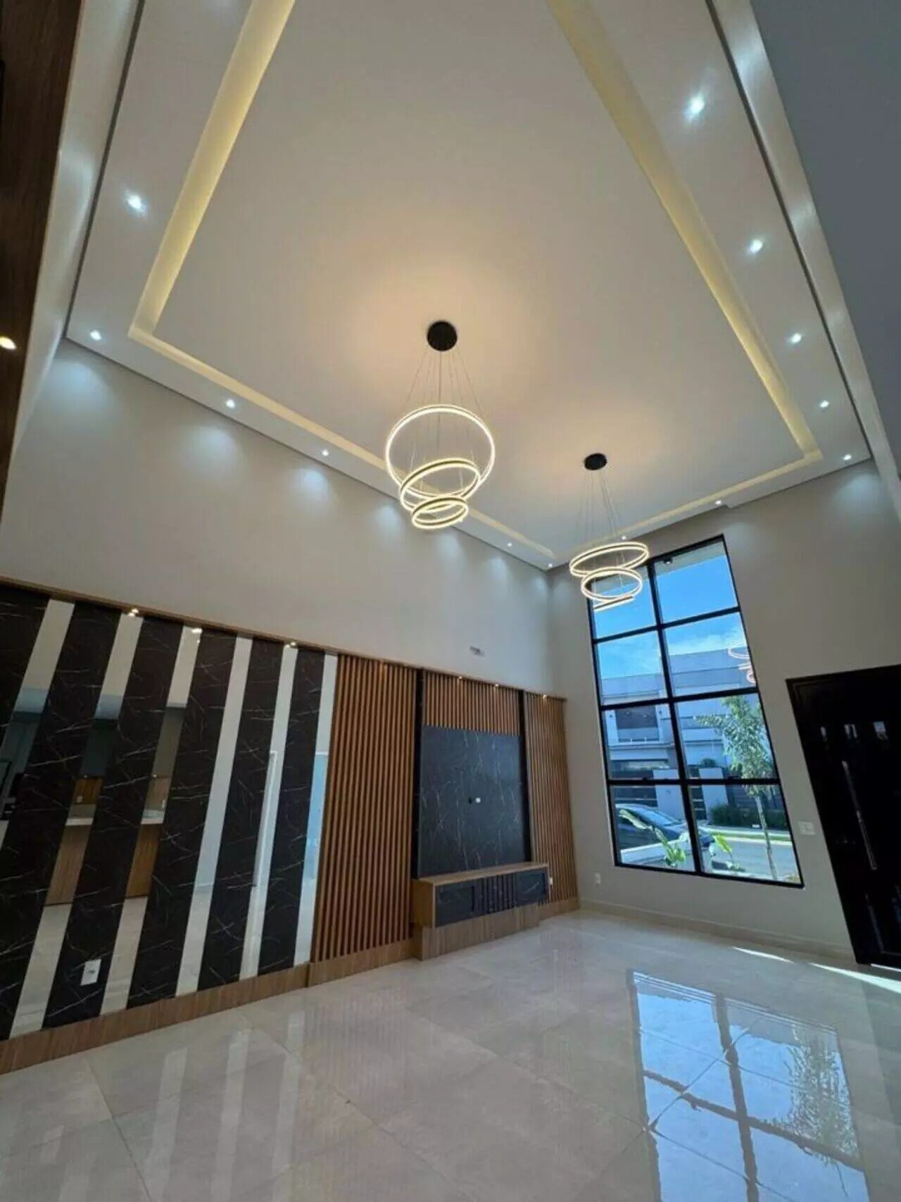 📺 Sala com painel e espaço para TV