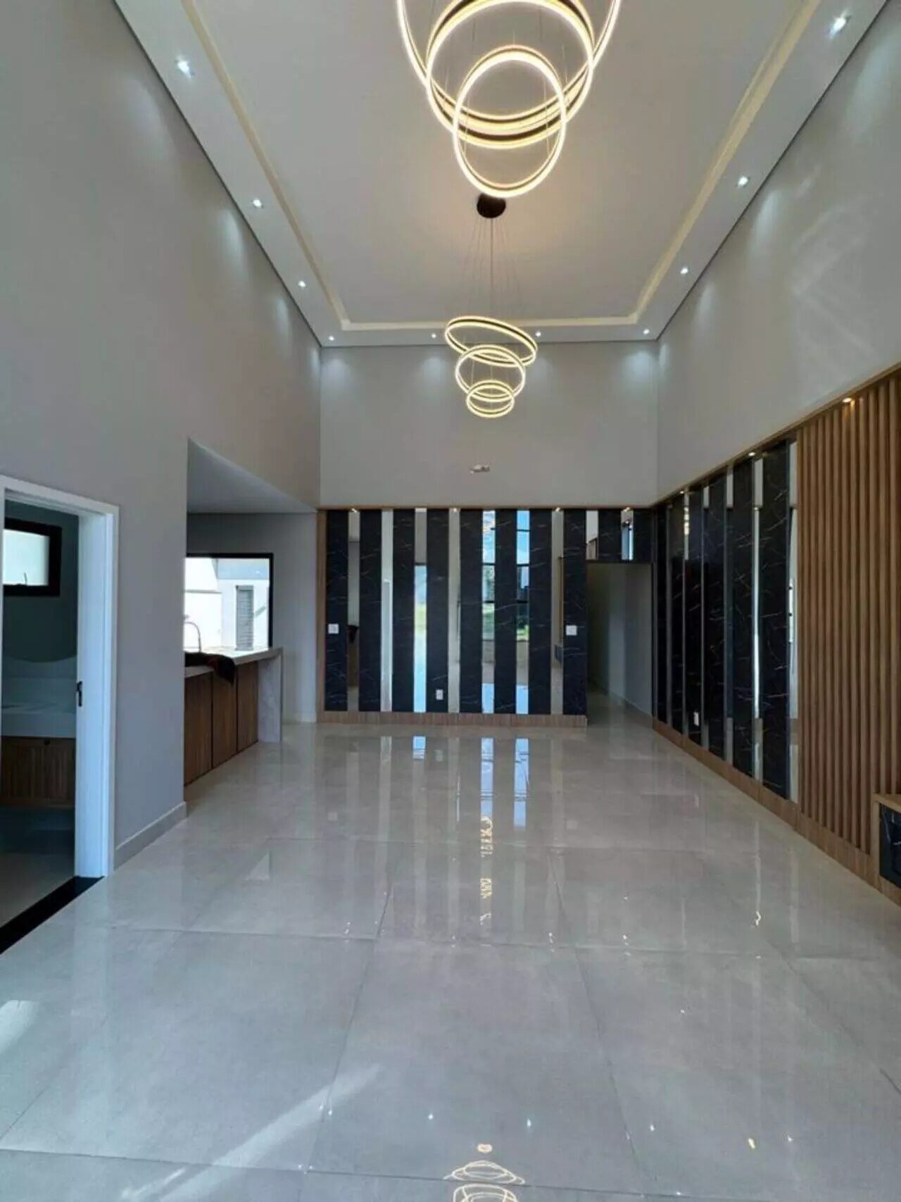 🛋️ Sala 2 ambientes com pé-direito de 5m, integrada à cozinha