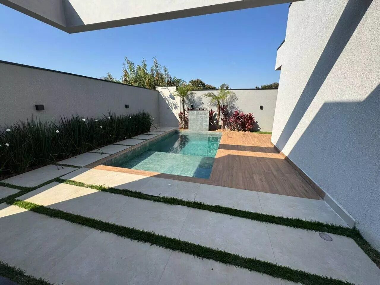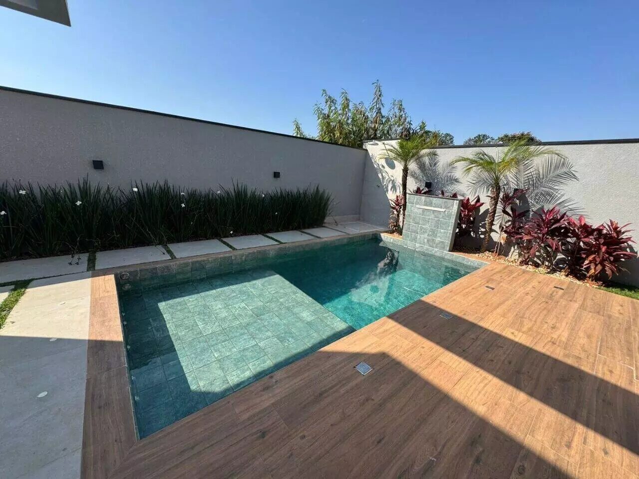 🏊 Piscina com cascata, prainha e iluminação por controle remoto