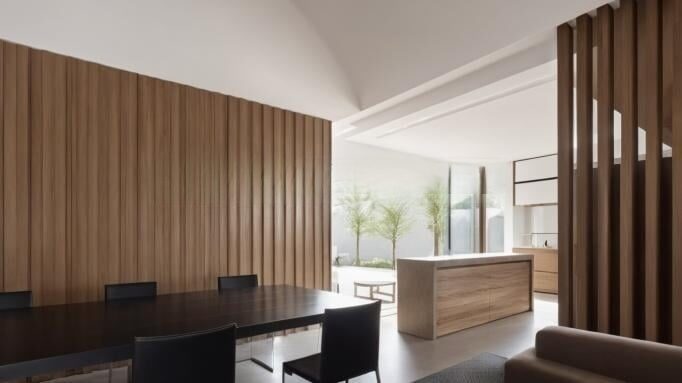 • Fachada com painel ripado em alumínio + porta pivotante com fechadura digital☀️ Infraestrutura moderna: