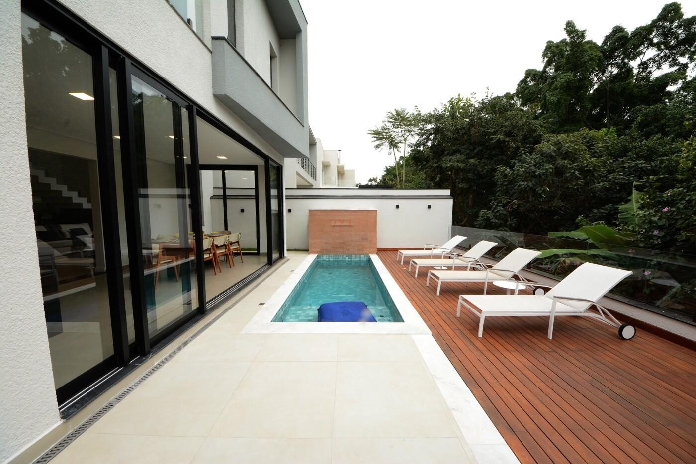 🛏️ 4 suítes (sendo 3 no piso superior e 1 no térreo – reversível para escritório)