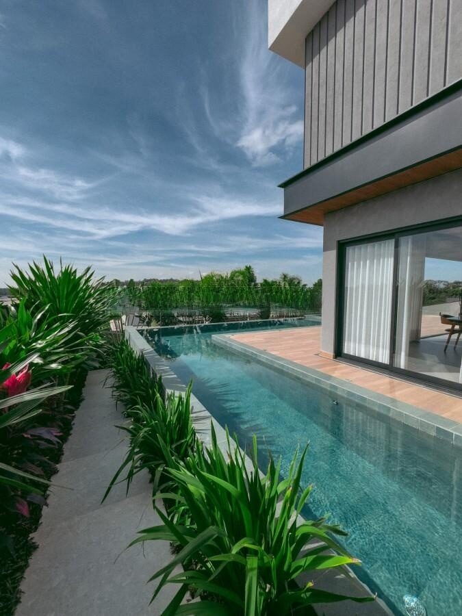 • Piscina em “L” com spa e cromoterapia