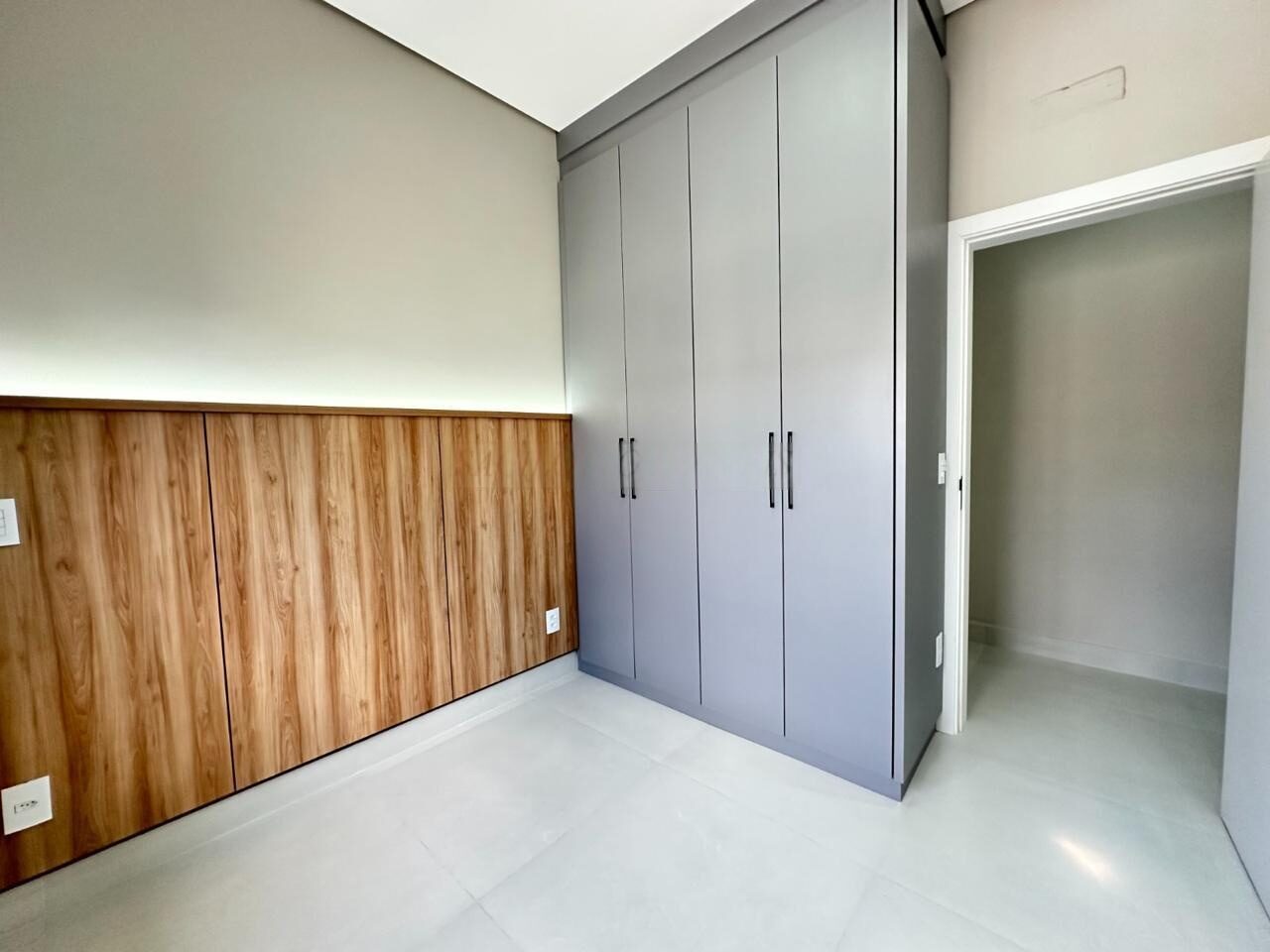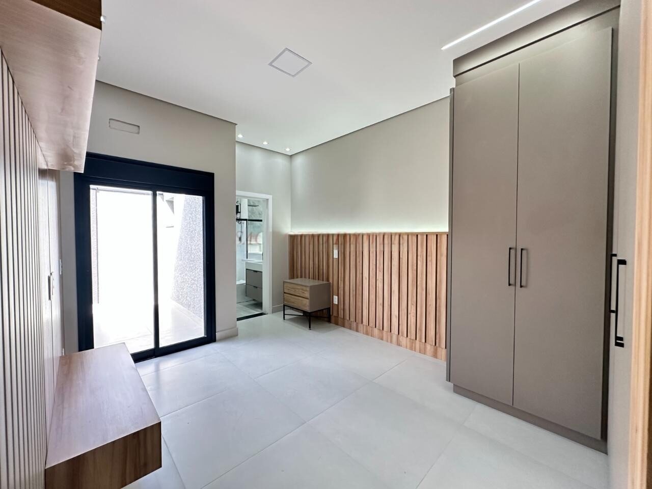 – Suíte master com armários, cabeceira de cama e criados mudos