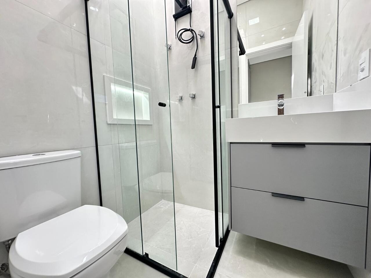 – Banheiros com armário, espelho, box e chuveiro eletrônico