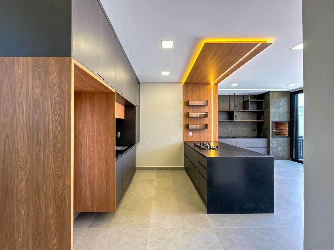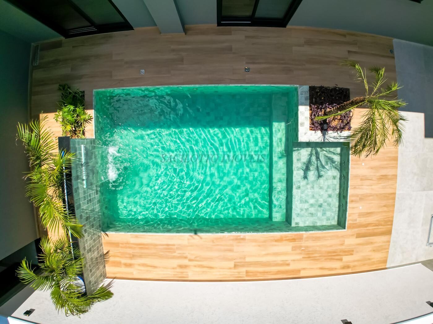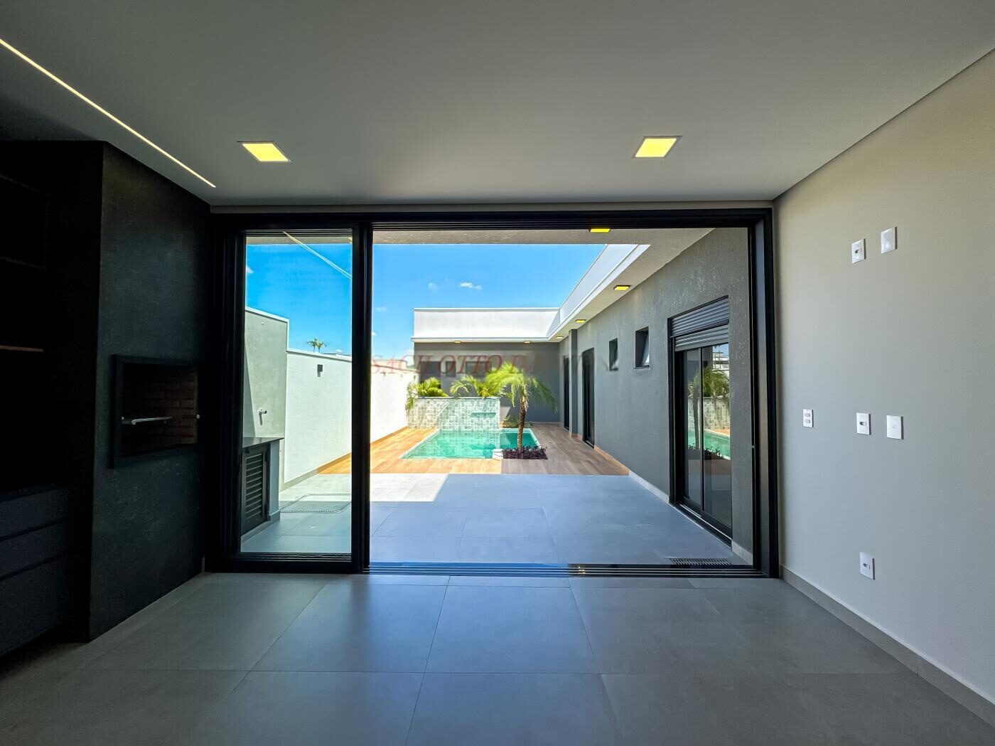 Área Total 300,00 m Área Construida 202,76 mTÉRREA – 03 suítes sendo a master com closet; – Escritório; – Lavabo; – Cozinha com cooktop e planejados; – Sala de estar e jantar integradas; – Ambientes preparados para ar condicionado; – Piscina com cascata, hidro e preparação para aquecimento; – Banheiro para área de piscina; – Esquadrias automatizadas nas suites; – Louças e metais alto padrão (Deca, Docol, Tramontina); – Pisos e revestimentos alto padrão; – Fachada com revestimentos, detalhes em madeira e janela em pele de vidro; – 02 vagas de garagem coberta e 2 descobertas; – Aquecedor solar, boiler 500L; – Circuito de tomadas bifásico; – Preparação para energia fotovoltaica; – Móveis planejados na cozinha, gourmet, closet da suite master, lavanderia e banheiros; – Paisagismo tropical.